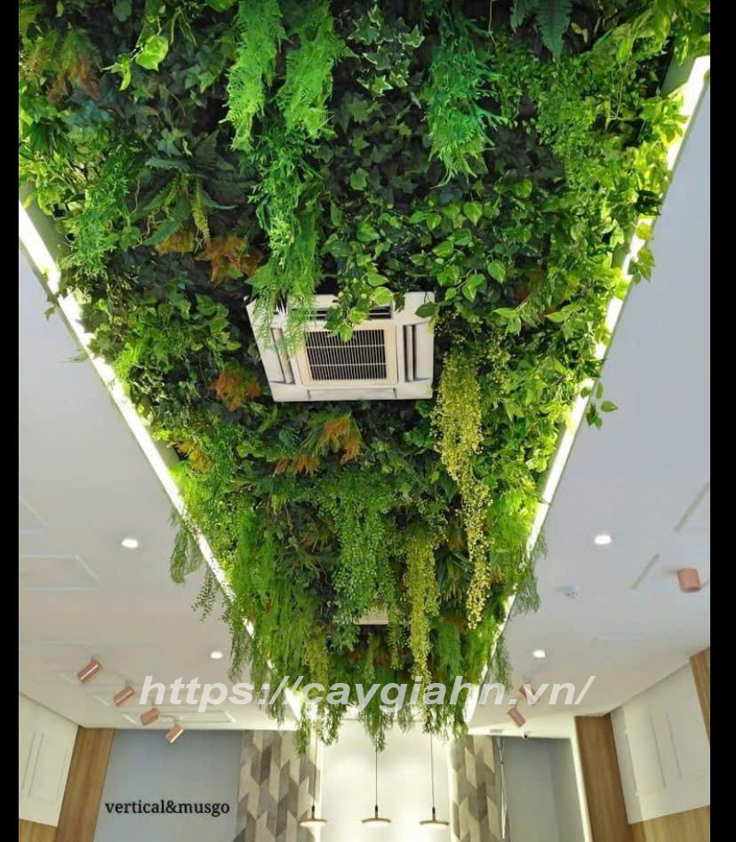 Trần cây giả được làm từ các loại lá, hoa và rêu nhân tạo cao cấp, mô phỏng tự nhiên sống động. Nhờ công nghệ sản xuất tiên tiến, sản phẩm có màu sắc tươi sáng, mềm mại và độ bền cao, không bị phai hay rụng như cây thật.
